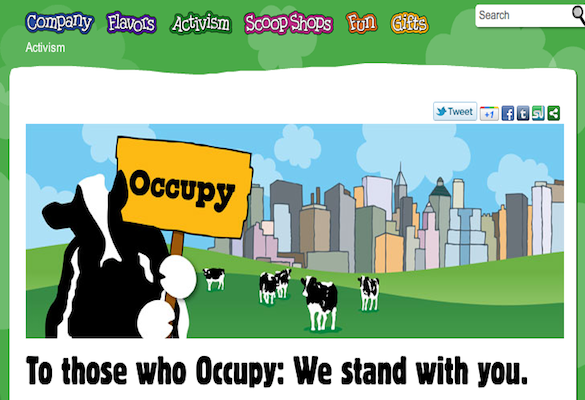 17“Ben & Jerry’s Becomes First High-Profile Company to Support Occupy Wall Street,” by Carmel Lobello, at http://www.deathandtaxesmag.com/149476/ben-jerrys-becomes-first-high-profile-company-to-support-occupy-wall-street/.